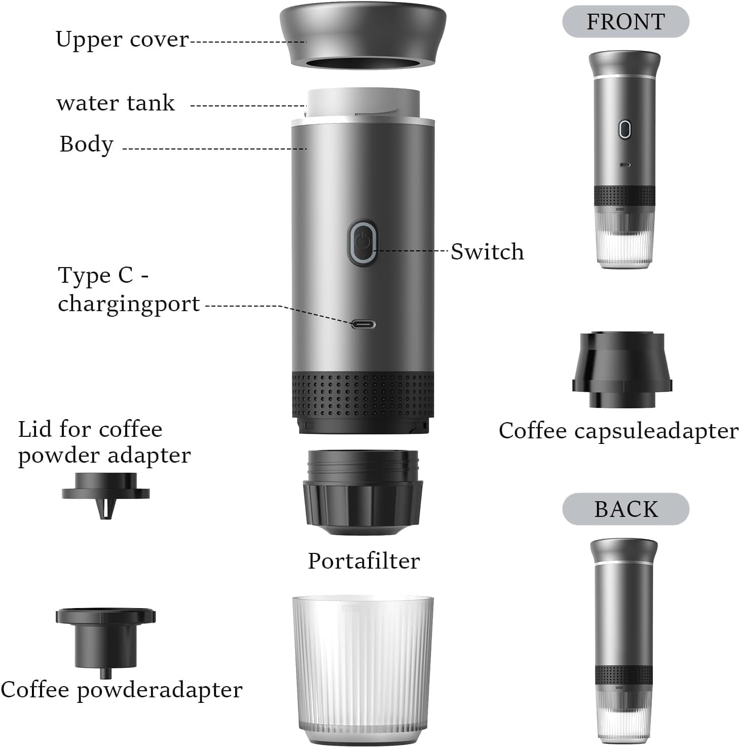 - The Zcyge Camping Coffee Makers boasts a double 2-in-1 feature, allowing you to use both ground coffee and coffee capsules. The Espresso Machine is made of 304 stainless steel, which is not only durable and rust-free but also easy to clean. The leak-proof lid with a sealing ring adds a touch of convenience and ensures that your coffee stays put during travel. One standout feature of Zcyge Battery Operated Coffee Maker is its unique distillation extraction process and fast heating time, ensuring your coffee remains hot and flavorful.